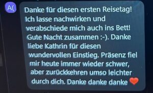 „Das ist mein Hoffnungsfunke gewesen, aus dem ein ganzer Vulkan entstanden ist 🌋 Bimb hat meinem inneren Kompass die Koordinaten für „nach Hause“ gegeben. Bimb hat mir Hoffnung gegeben und doch war mir nicht klar, was für ein Leben für mich anfängt. Ich könnte noch ewig weiter machen. Ich bin am Start und so lange es dieses Programm gibt, wird mein Frühling immer damit beginnen auch selbst wieder neu zu erblühen. Ich werde ein 4-ever Bimb Groupie 🔥❤️“